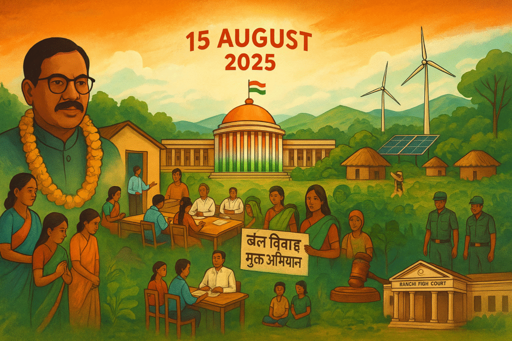 The events of 15 August 2025 and August 2025 highlight important developments in Jharkhand—political (Ramdas Soren’s demise, Bharat Ratna demand), social (child marriage action plan), economic (budget, renewable energy), security (Naxalism), and administrative (JSSC exams, teacher recruitment).